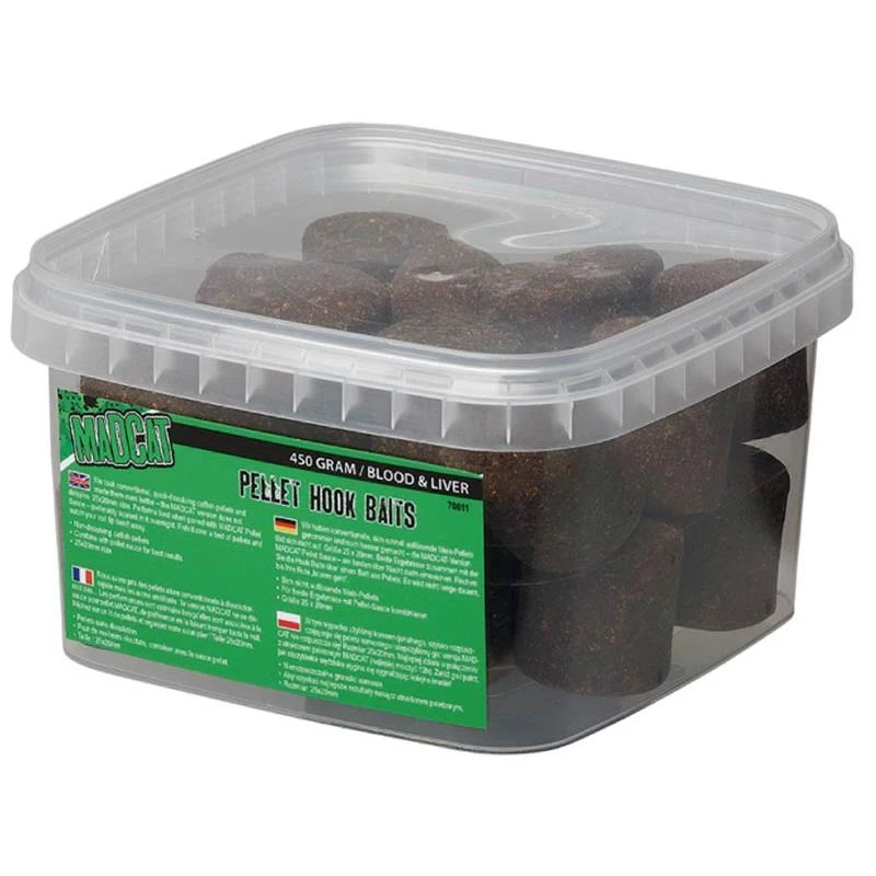Nous avons pris des pellets silure conventionnels à dissolution rapide mais les avons améliorés : la version MADCAT ne se dissout pas… Les performances sont optimales lorsqu’elles sont associées à la sauce pour pellet MADCAT, de préférence en la faisant tremper toute la nuit. Pêchez sur un lit de pellets et regardez votre scion plier !